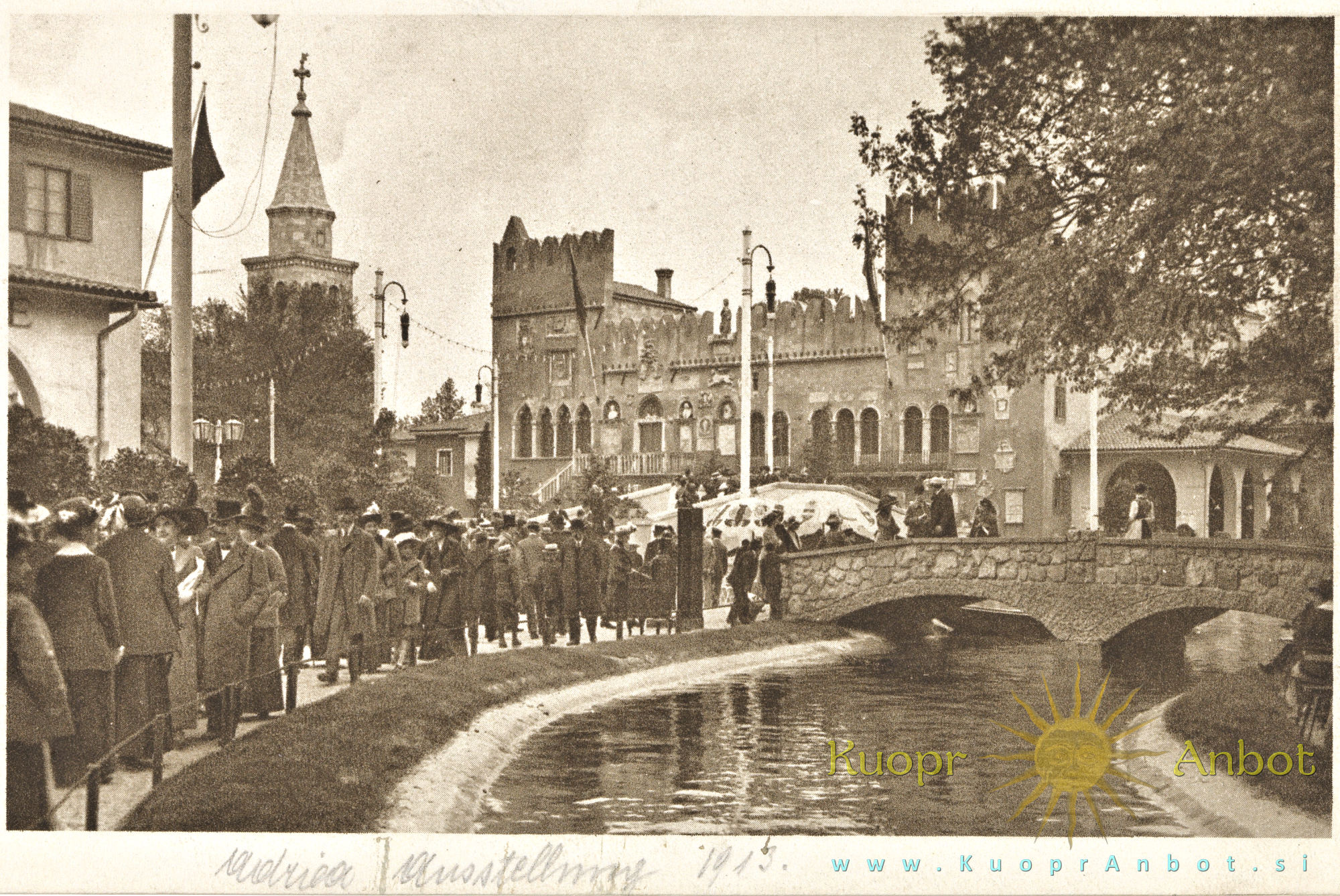 Razglednica izdana v času razstave “Adria” avstrijskega Adrijanskega morja “Österreichische Adria Ausstellung” leta 1913 na Dunaju, kjer je bila poleg drugih stavb, spomenikov in palač, tudi replika Pretorske palače iz Kopra. Izvirno fotografijo in razglednici hranijo v dunajskem muzeju (Museum Wien)