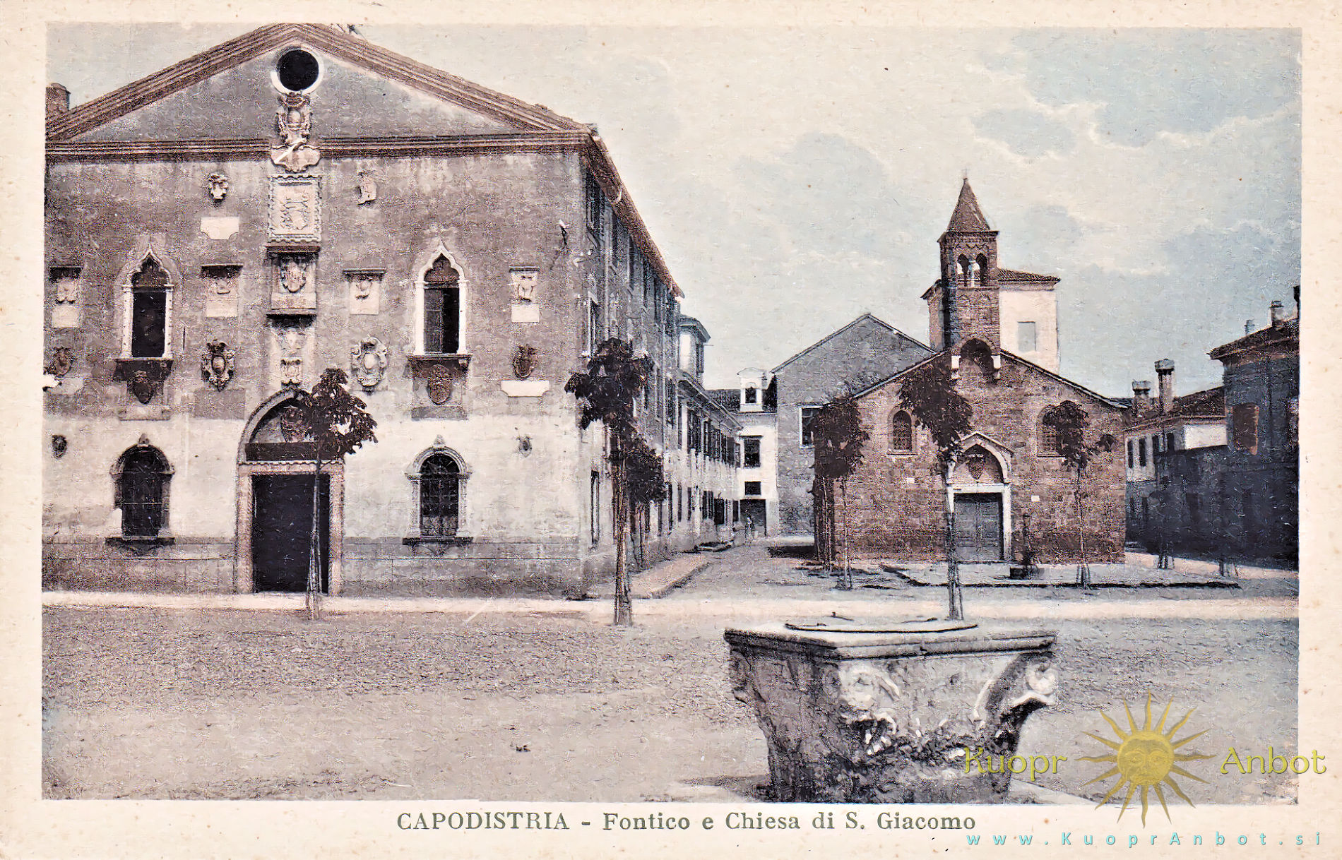 Zadnjič je en član spraševal kdaj so zazidali okna na tej cerkvi, pa sem malo pogledal, kako je prišlo do tega. Cerkev, tam na Brolu je bila postavljena v XIV. stoletju in je najbrž opravljala svojo funkcijo do XIX. stoletja. V tistem stoletju, po propadu Benečanov, obisku Francozov in prihodu Avstrijcev, so porušili ali samo skonsakrirali kar precej cerkva po mestu. Take ki so bile opuščene, so uporabili predvsem za skladišča, tu pa tam so katero tudi preuredili v stanovanjsko hišo. “Jakoba” so očigledno uporabljali za skladišče, saj se na prednji fasadi pojavita dve pravokotni okni na fotografiji iz leta 1890. Ni bila namreč navada, da bi taka navadna okna vgrajevali v cerkve. Kasneje, pod Italijo pa naletimo na fotografije že od leta 1925 dalje kjer vidimo nova okna v gotskem stilu. Najverjetneje, da bi bila bolj v slogu same zgradbe in sosednjega Fontega.