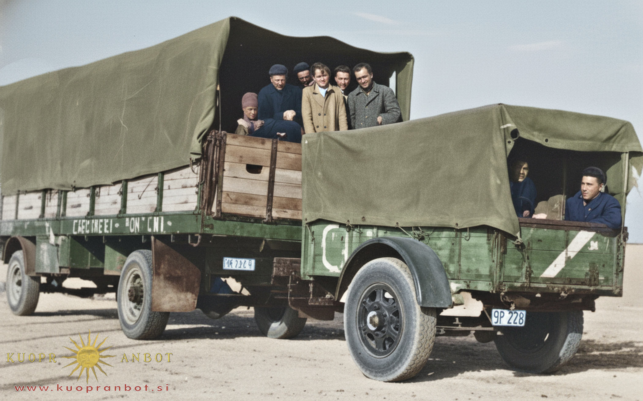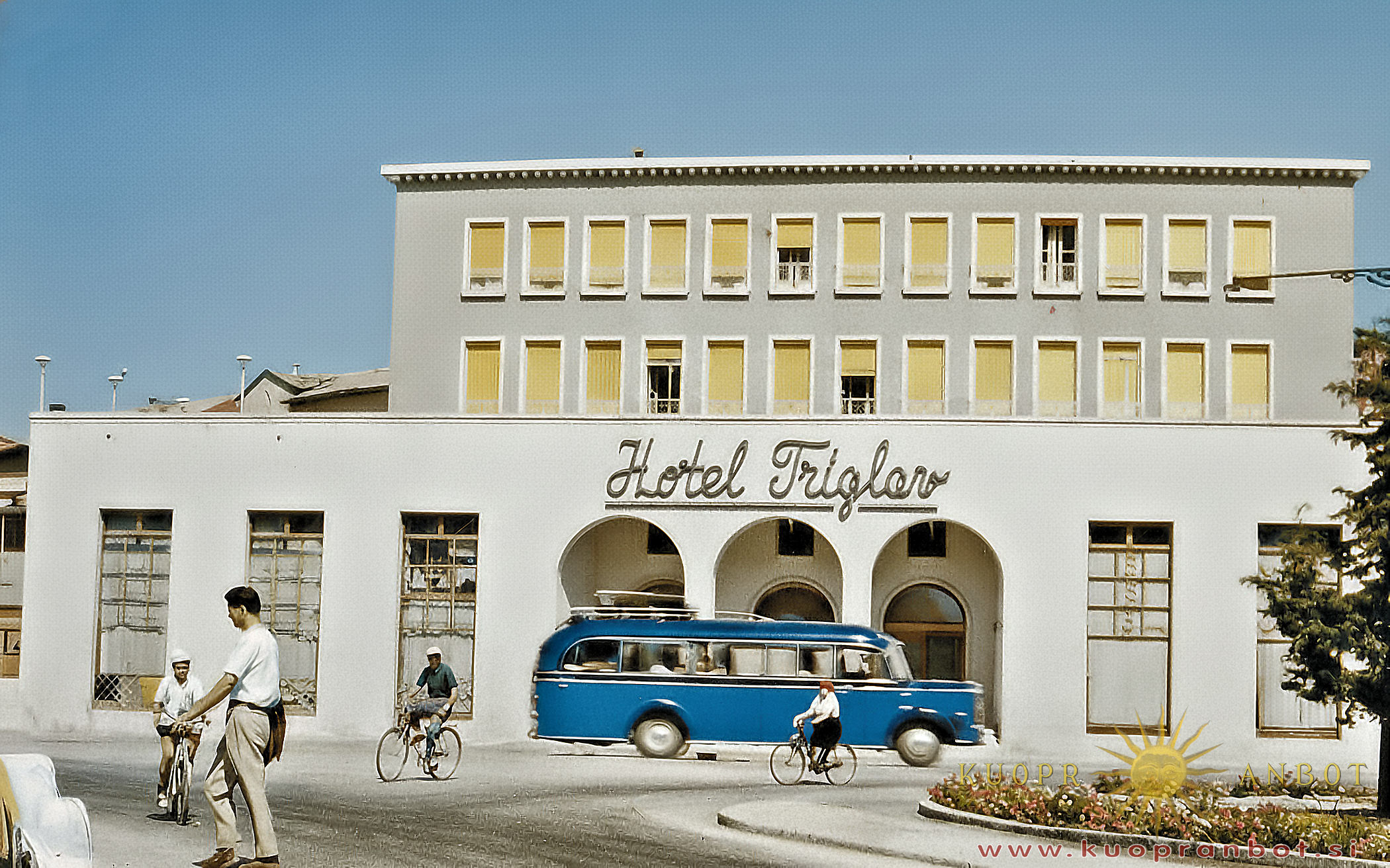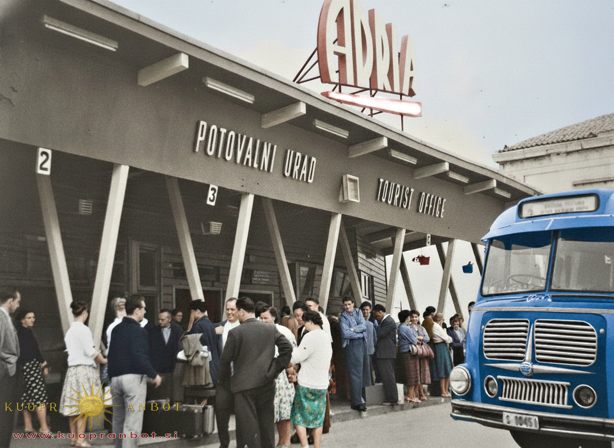 Še pred neka desetletji, si je bilo težko predstavljati življenje brez avtobusov in koprska avtobusna postaja, je bila srce mesta. V začetku petdesetih let prejšnjega stoletja je leseno stavbo, kjer je bila čakalnica, prodajalna avtobusnih in ladijskih potniških kart, a tudi informacijska pisarna, zgradilo podjetje Adria. Prevozniško podjetje Adria je leta 1947 kupilo predelan tovornjak za prevoz potnikov (2. slika) in začelo s prvimi prevozi, a kmalu so nabavili tudi prave avtobuse. Najbolj mi je ostal v spominu avtobus s prikolico (3. slika), ki je večinoma vozil potnike brez pripete prikolice. V šolskem letu 1956-1957 smo otroci iz Žusterne in Prov šli peš do Semedele, kjer se je ta avtobus ustavil na postaji. Pri zadnjih vratih smo skočili v notranjost, ker smo vedeli, da do Kopra sprevodnik ne bo uspel iz ospredja priti do nas pri zadnjem izhodu, ker je bila v avtobusu gneča. Na ta način smo se iz Semedele do Kopra pripeljali zastonj. Kako velikanska razlika v načinu razmišljanja danes in tedaj, je bila, je vidno takoj, Saj smo otroci iz Prov, Žusterne in Semedele, šli peš, ali s kurjero v šolo na Belvederju (kasneje JPV) in nazaj domov sami, že v 1. razredu. Danes morajo starši otroke peljat v šolo in jih iskat, po koncu pouka, še v 3. razredu osnovne šole, ko smo mi imeli za samostojne.