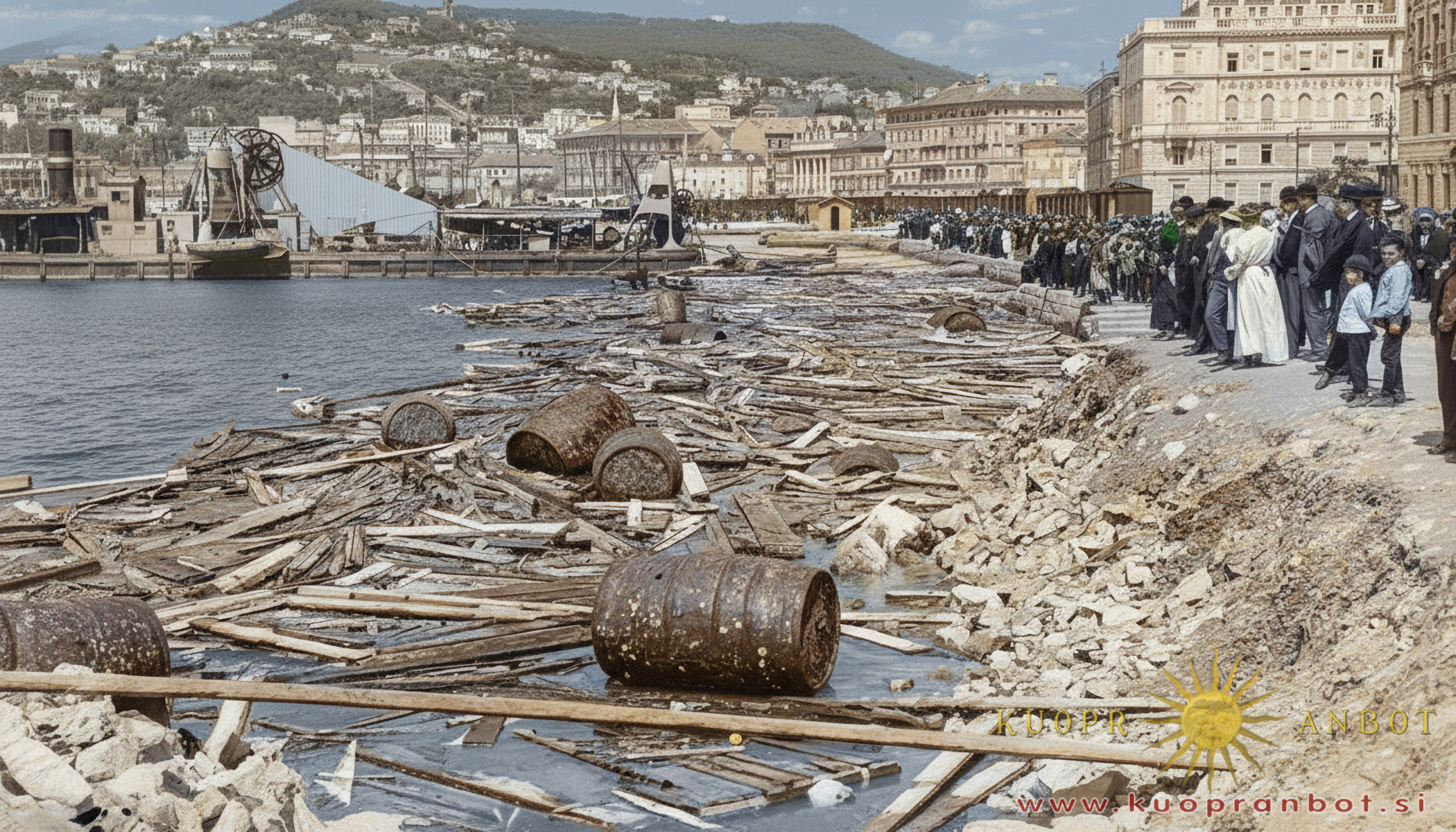 Največ podatkov je iz Trsta, kjer se je potopilo kar nekaj večjih bark, umrlo pa je 18 mornarjev. Pretrgalo je vse telegrafske in telefonske linije z Dunajem, vse lesene objekte ob obali pa je ali posrkalo v morje ali na mestu uničilo . Podobno je bilo ob celi istrski obali. Recimo v Portorožu je pred Palace hotelom celo uničilo park in podrlo kamnito kolonado.