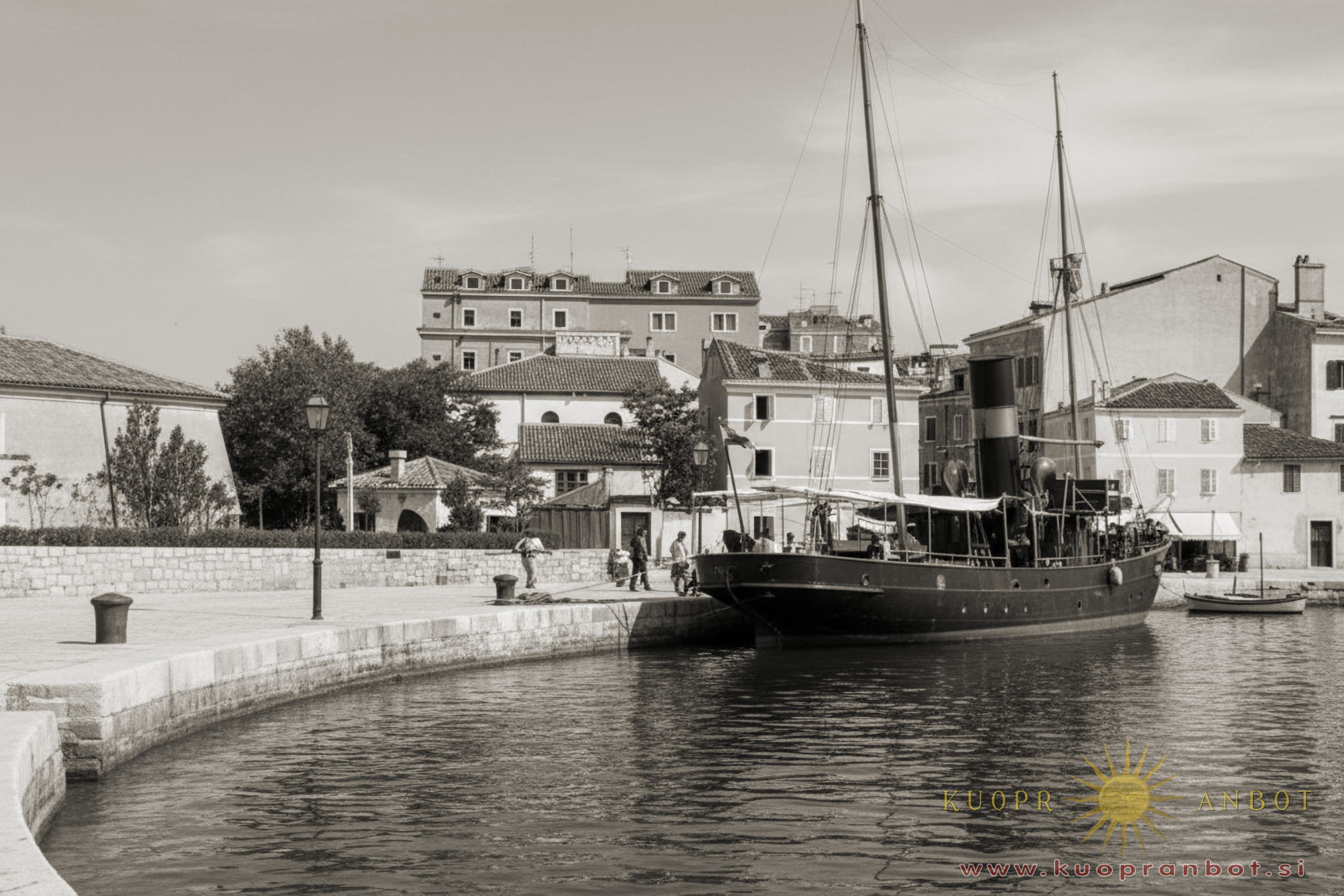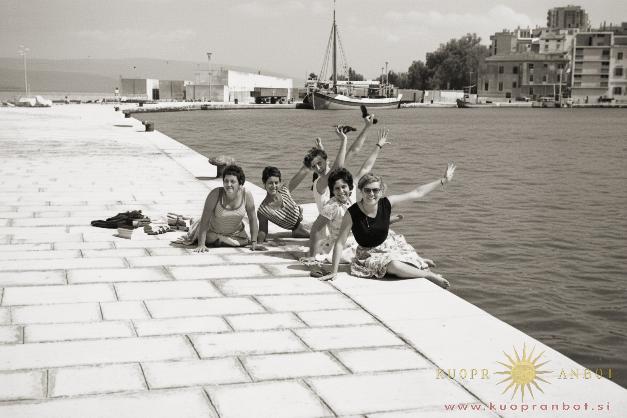 Sem brskal malo pa Kamri in naletel na mojo takratno sosedo Maria Rozo, ki se je slikala na našem pomolu leta 1961 z njenimi prijateljicami. Poleg teh brstečih mladenk je na sliki še nekaj zanimivosti. Levo zadaj so betonski kesoni, ki so jih tam izdelovali za potrebe novega pristanišča. Bili so idealni za skakanje v vodo, seveda v popoldanskem času, ko ni bilo več delavcev. Na pomolu je tudi privezana trabakola, ki je še tovorila razno blago za koprsko pristanišče, kamor so ga vozili s traktorji v tamkajšnja skladišča. Čisto desno pa vidimo tisti moderen prizidek ob hiši takratne Uprave javne varnosti, kjer je imela Intereuropa svoje nove prostore.