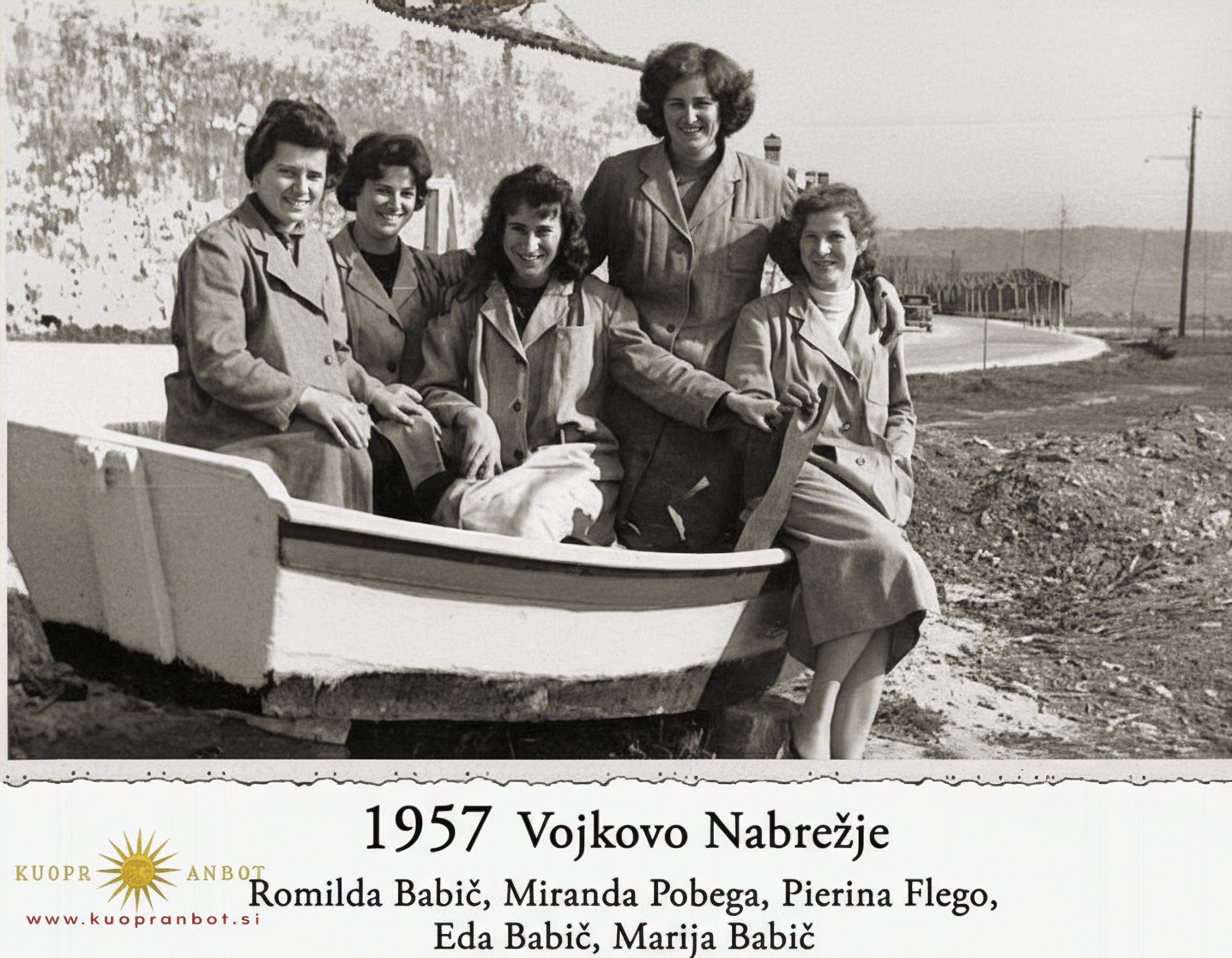 Ko sem iskal stare slike tega nabrežja sem naletel na Kamri na fotografijo pravih šavrinskih pupc, kot lahko ugotovimo iz njihovih priimkov. Glede na oblečene halje in leto slikanja so najbrž delale v bližnji Partizanki, predhodnici Iplasa in so med marendo skočile na en “fotosešn”. Kot po naključju so slikane v isti batani (ščif po slovensko), ki je vidna, s sicer slabo razločnostjo, tudi na panoramski sliki nabrežja.